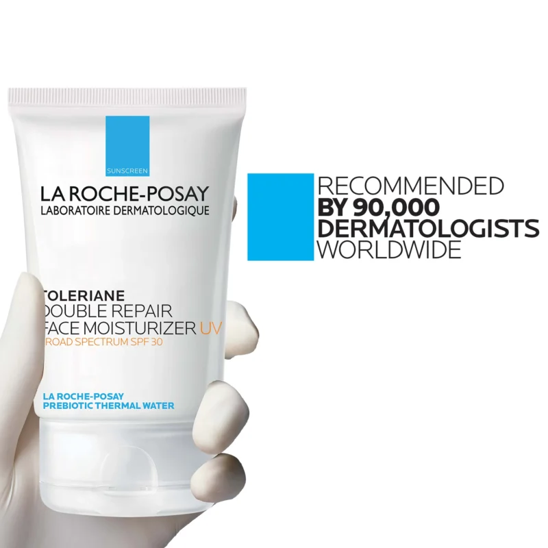 Toleriane Double Repair Face Moisturizer is formulated with dermatologist-recommended ingredients including ceramide-3, niacinamide, glycerin and La Roche-Posay Prebiotic Thermal Water. Double action helps repair skin’s natural protective barrier after 1-hour and provide up to 48-hour hydration. Its lightweight cream texture easily absorbs into the skin to provide immediate comfort. Suitable for all skin types, including sensitive. This face moisturizer helps restore healthy-looking skin.