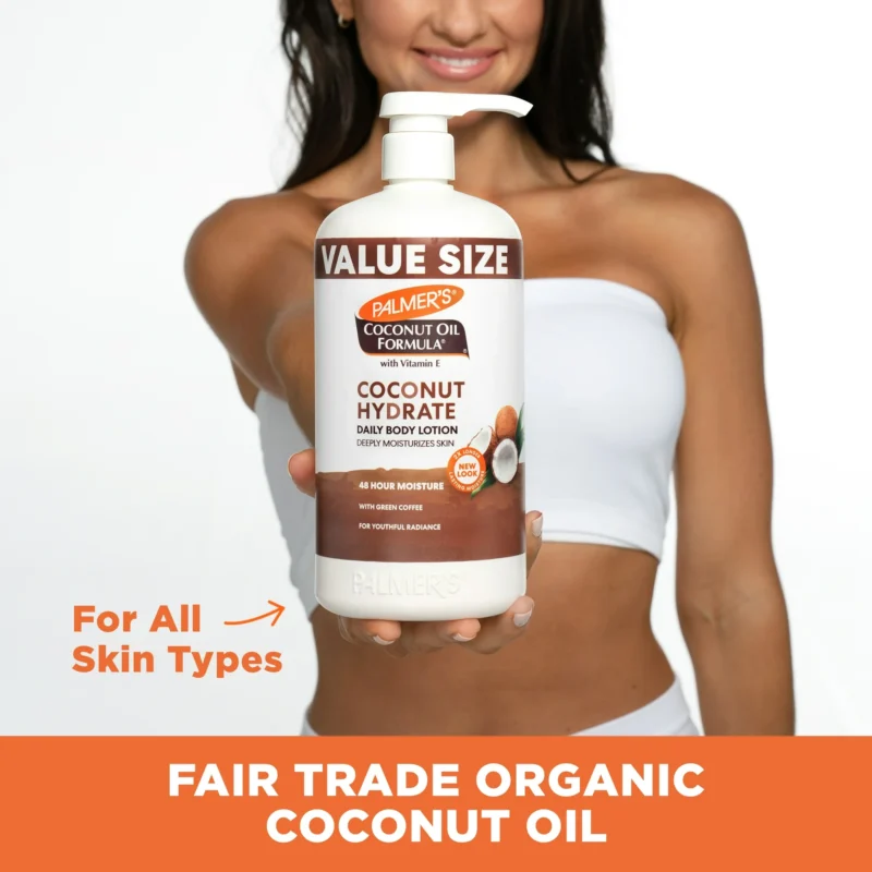 Hydrate and replenish skin with Palmer’s Coconut Oil Formula Daily Body Lotion, crafted with antioxidant-rich Coconut Oil and Green Coffee Extract for radiant, healthy-looking skin. This great-smelling, non-greasy coconut lotion provides 48 hour moisturization and is loaded with naturally occurring healthy skin and hair components such as Lauric Acid, Caprylic Acid, Capric Acid, Proteins, Antioxidants and Vitamin E. These raw, natural ingredients deliver luxuriously rich hydration to keep skin radiant and provide a healthy-looking glow.